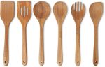 Utensili da Cucina in Legno, Set di 6 Pezzi, Legno di Acacia, Pre-Trattati con Olio, Sicuri per l’Uso con le Pentole